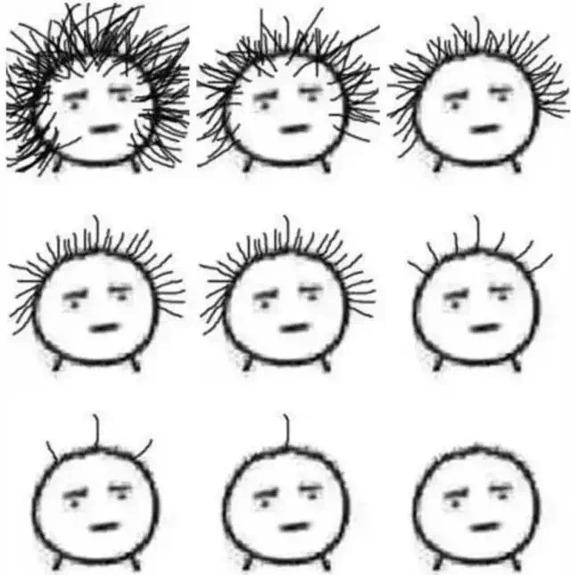 其实,正常人也会脱发,每天有50—100根头发会生理性地脱落。所以别看到自己掉了几根头发就急得跳墙。但如果连续2、3个月起床或洗头时,发现头发比以前明显掉得多,并且头发变得稀疏、出现斑片状脱发、发际线不断往后、头发变稀疏等情况,别犹豫了,赶紧找医生“谈人生”吧。