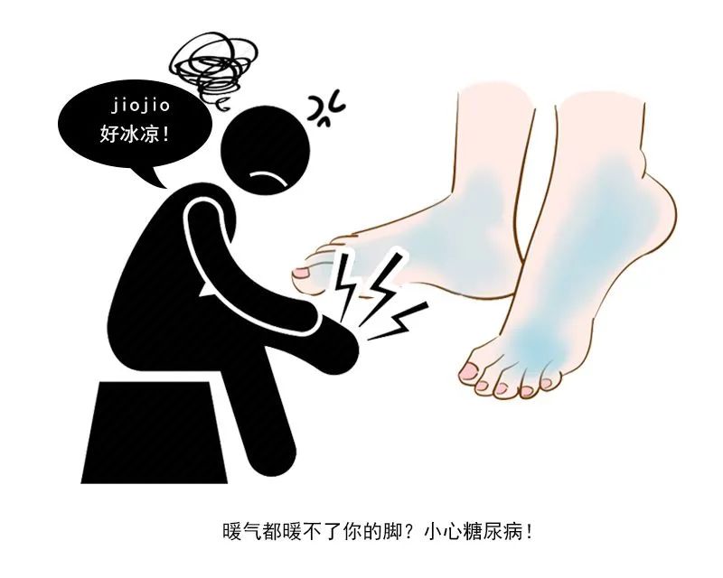 2、若有足部发凉、皮肤发暗、色素沉着等情况,应处于高度警惕状态。尤其是老年或长期吸烟的糖友,更应该注意。