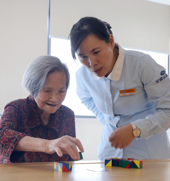 活动现场,老人们还参加了拼积木、叠杯子等益智游戏项目,在感受游戏乐趣的同时又锻炼了动手能力。“你来教教我,是这样子吗?”面对这些新奇的小游戏,大家都跃跃欲试。
