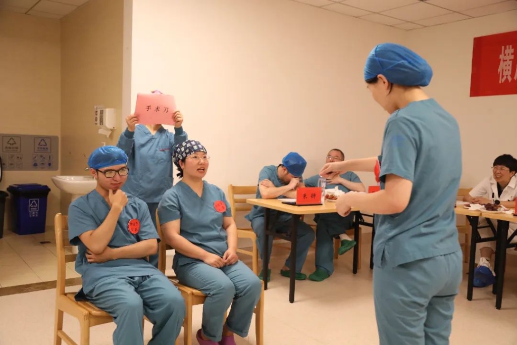 紧张刺激的理论知识竞答环节,则将比赛推向了高潮。各支队伍上演了一场默契大挑战,利用肢体语言生动演绎出各类器械设备、无菌物品、手术名称等,幽默诙谐的动作引来在场人员的阵阵欢笑。之后,护士们更是变身行走的“专业知识库”,凭借自己扎实的专业知识和临床经验,积极踊跃抢答各类问题,充分展现出了每个人扎实的理论功底。